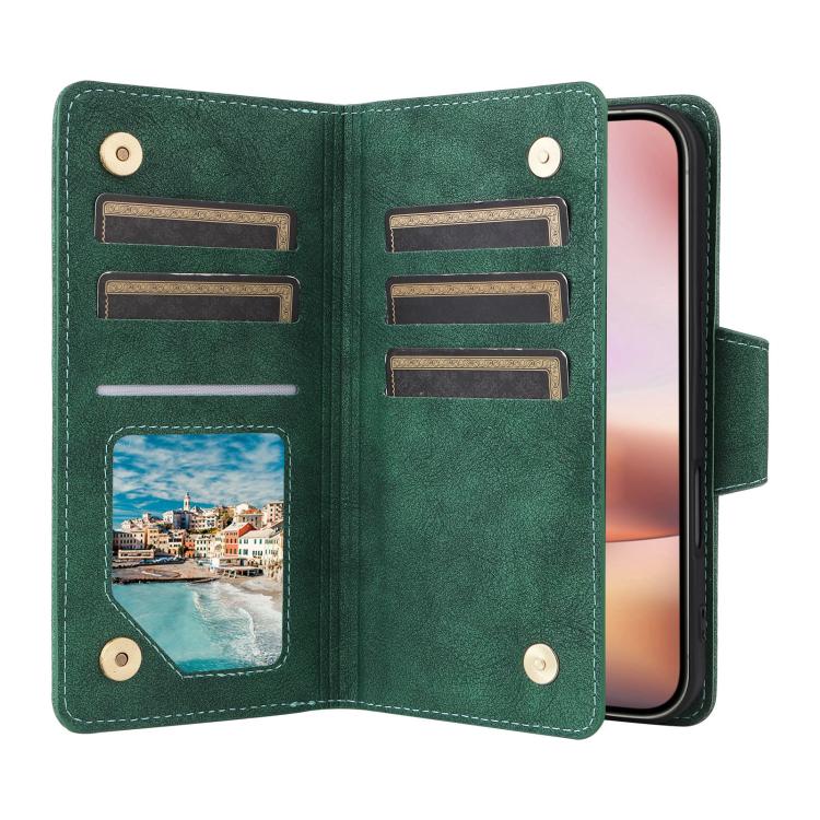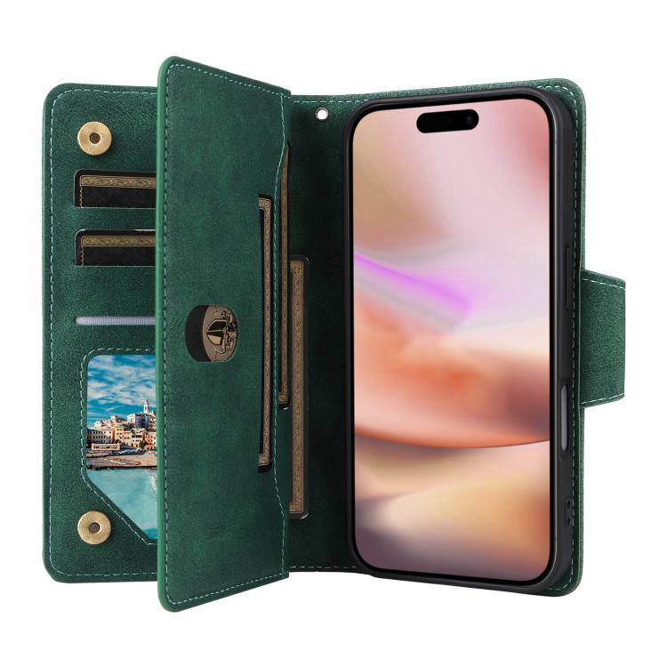 Funda de cuero con tres pliegues y hebilla de remache para iPhone 17 (verde)