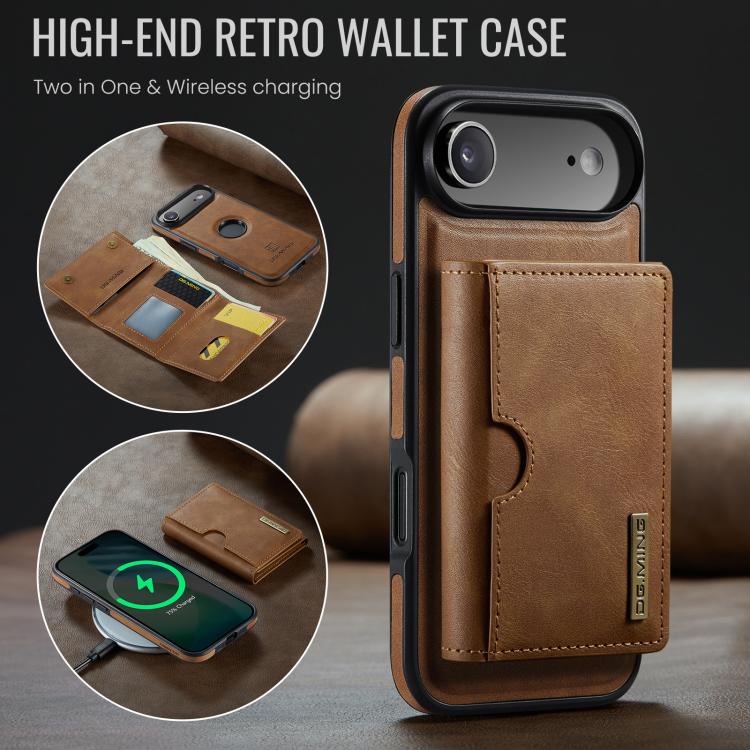 Funda de cuero extraíble para iPhone Air DG.MING M6 Series RFID con tres pliegues para tarjetas (marrón)