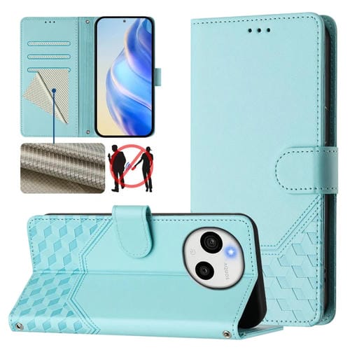 Funda de Cuero Rfid con Relieve en Panal para Sharp Aquos Sense9 Plus (Verde Menta)