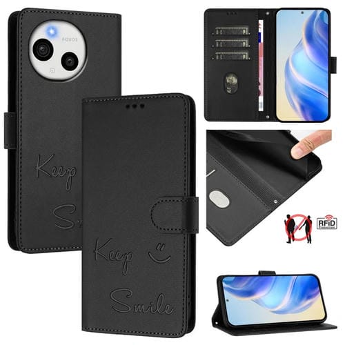 Funda de Cuero Rfid con Relieve Sonriente para Sharp Aquos Sense9 (Negra)