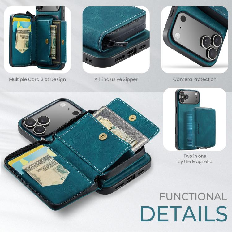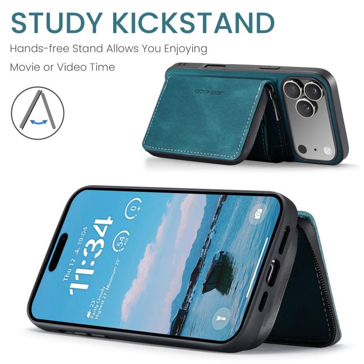 Funda de piel con cremallera magnética horizontal tipo libro JEEHOOD J02 para iPhone 17 Pro Max (Azul)