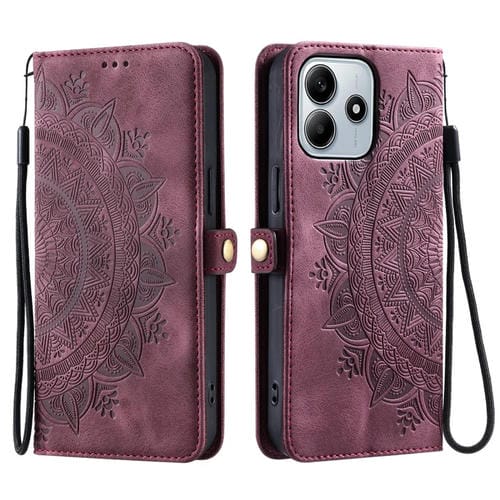Funda de Piel con Relieve Totem para Xiaomi Redmi Note 14 5G (Rojo Vino)
