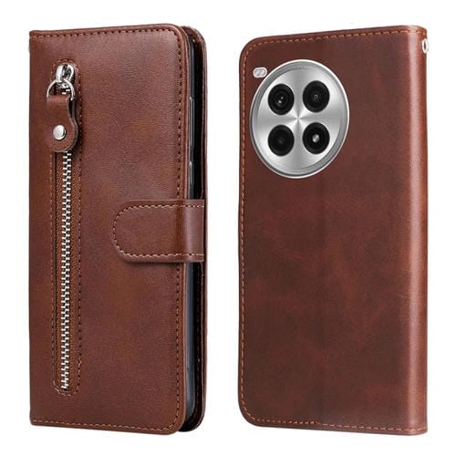 Funda de Piel con Textura de Becerro y Cremallera para OnePlus Ace 3 Pro (Marrón)