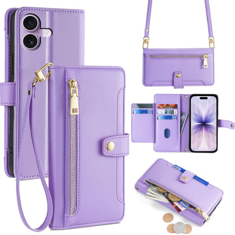 Funda de piel tipo cartera con cremallera y diseño de oveja para iPhone 17 (morado)