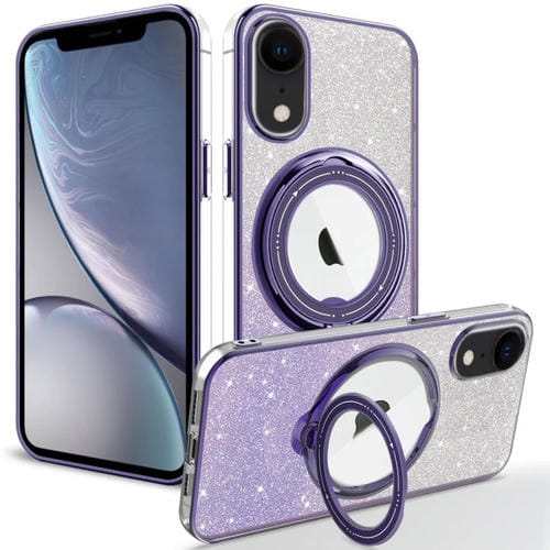 Funda TPU con Purpurina Degradada y Soporte Giratorio Magsafe para iPhone Xr (Morado Noche)