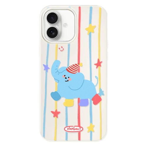 Funda híbrida TPU y PC iPhone 16 Plus Elefante con Calcetines (Blanco)