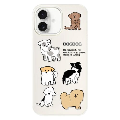 Funda híbrida TPU Policarbonato iPhone 16 Cachorro de Razas Múltiples (Blanco)