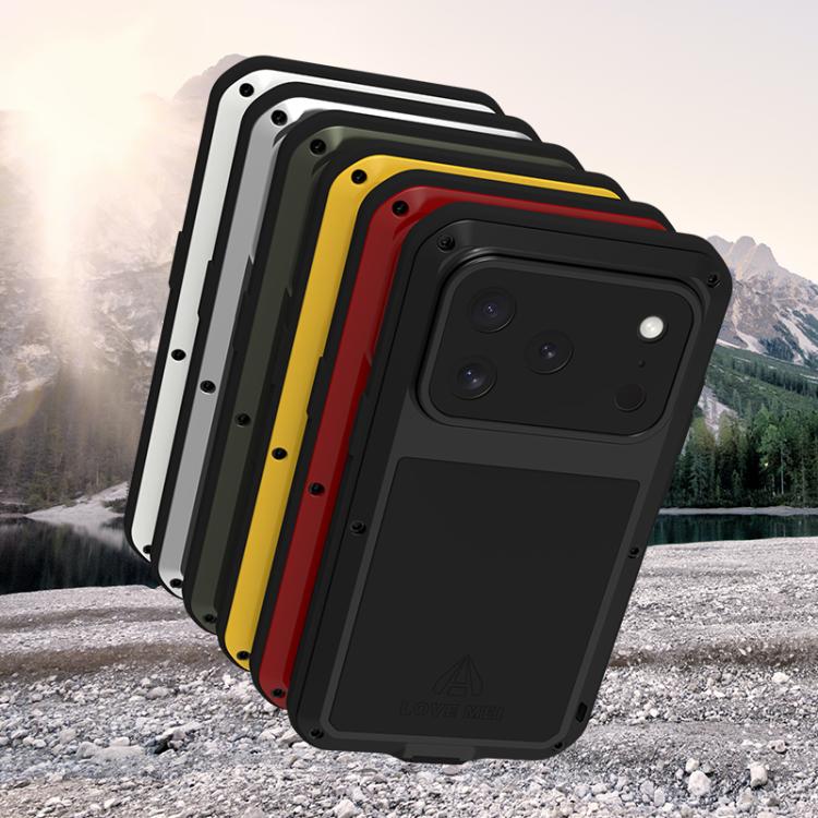 Funda Love Mei de metal, resistente a golpes, impermeable y antipolvo para iPhone 17 Pro (amarilla)