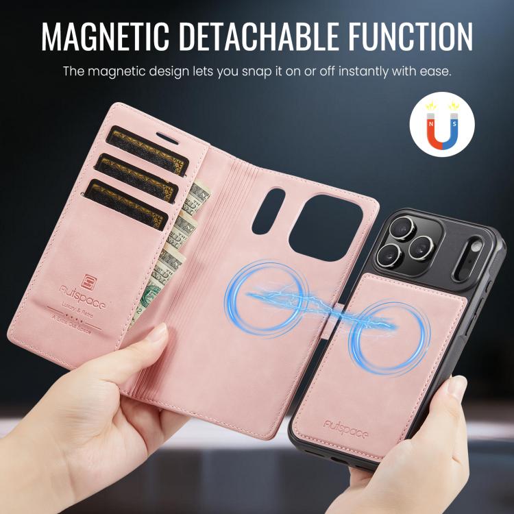 Funda magnética MagSafe AutSpace A05 2 en 1 con textura de piel de becerro retro para iPhone 17 Pro (rosa)