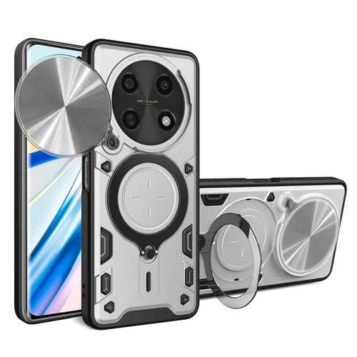 Funda para Teléfono Huawei Nova Y91 4G con Soporte Magnético Deslizante y Textura de Cd (Plateada)