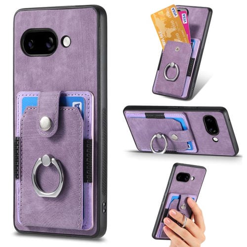 Funda para Teléfono Google Pixel 9A con Tarjetero y Anillo Tacto de Piel (Morado)