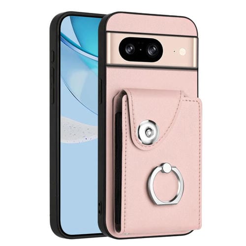 Funda para Teléfono con Tarjetero y Anillo para Google Pixel 8 (Rosa)