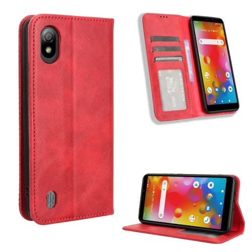 Funda para Boost Mobile Bounce 4G de Cuero con Textura Retro y Hebilla Magnética (Rojo)