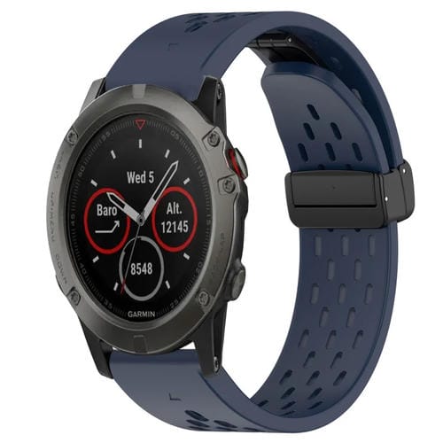 Correa de Reloj de Silicona para Garmin Fenix 5X Sapphire 26mm con Orificio y Hebilla Plegable (Azul Medianoche)