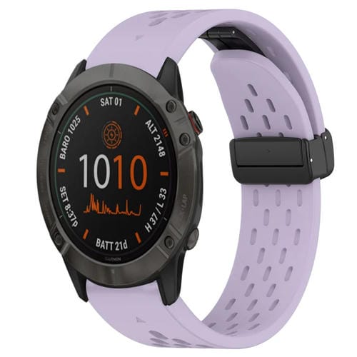 Correa de Reloj de Silicona para Garmin Fenix 6X 26mm con Orificio y Hebilla Plegable (Púrpura)