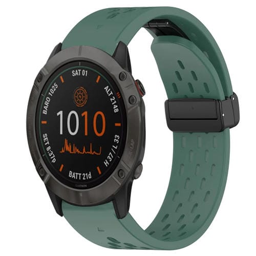 Correa de Reloj Garmin Fenix 6X 26mm silicona con orificio y hebilla plegable (Verde Oscuro)