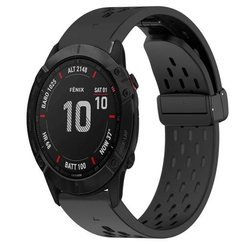Correa de Reloj de Silicona para Garmin Fenix 6X Sapphire 26mm con Orificio y Hebilla Plegable (Negro)
