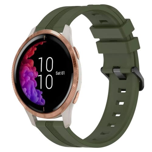 Correa de Reloj de Silicona para Garmin Venu 20mm con Rayas Cóncavas (Verde Militar)