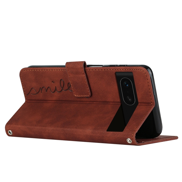 Funda para Google Pixel 8A Skin Feel Heart de Cuero en Relieve con Cordón Largo (Marrón)