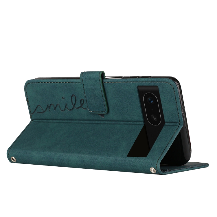 Funda para Google Pixel 8A Skin Feel Heart de Cuero En Relieve con Cordón Largo (Verde)