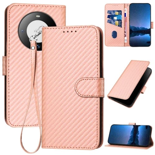 Funda de Cuero Huawei Mate 60 Pro Yx0070 con Hebilla de Fibra de Carbono y Cordón (Rosa)