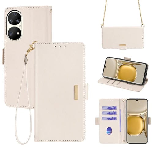 Funda de Cuero para Huawei P50 Pro con Cadena Cruzada para Teléfono (Blanco)