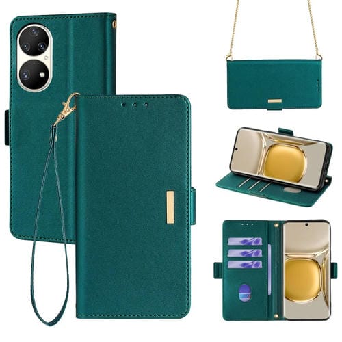 Funda de Cuero para Huawei P50 Pro con Cadena Cruzada (Verde)
