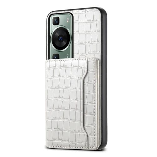 Funda para Huawei P60 con Diseño Bolsa de Tarjeta y Textura de Cocodrilo (Blanco)