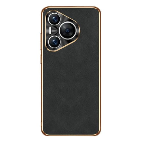 Funda de Cuero Piel de Cordero Galvanizada para Huawei Pura 70 (Negro)