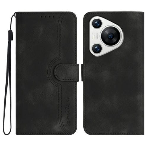 Funda de Cuero para Huawei Pura 70 con Sensación de Piel y Patrón de Corazón (Negro)