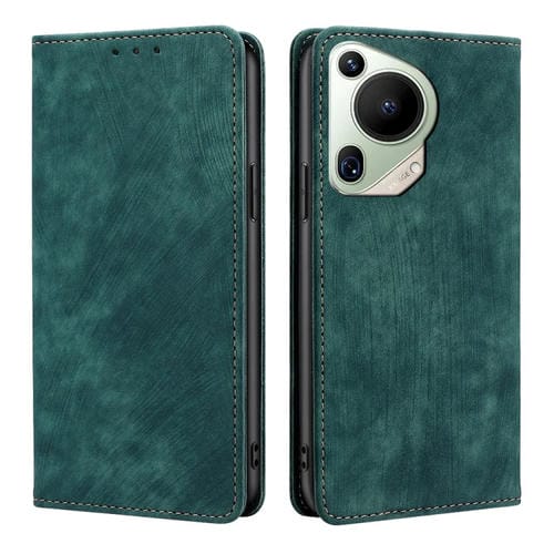 Estuche para Huawei Pura 70 Ultra Rfid de Cuero Magnético con Cepillo Antirrobo (Verde)