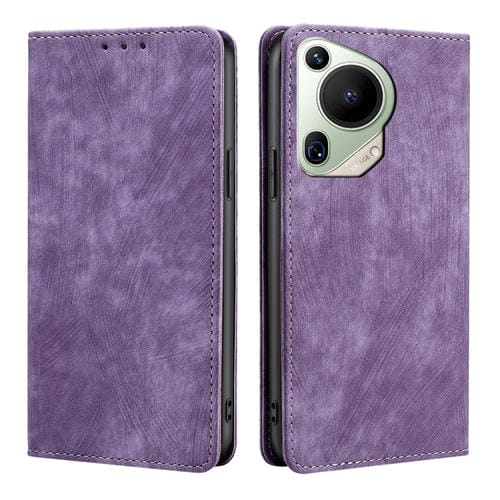 Funda de Cuero Magnética para Huawei Pura 70 Ultra Rfid con Cepillo Antirrobo (Púrpura)