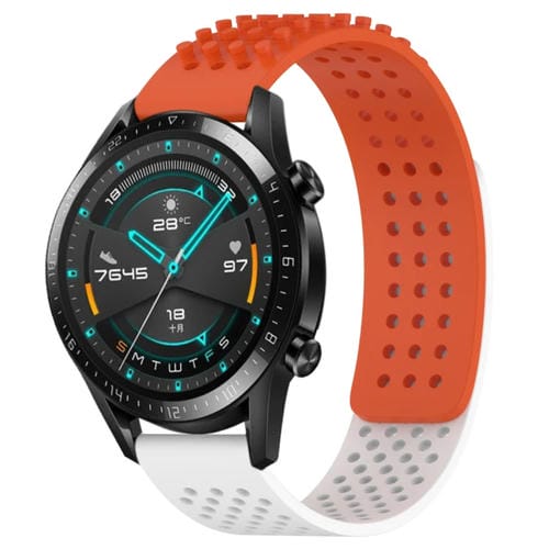 Correa de silicona para Huawei Watch GT2 42mm 20mm con puntos 3D transpirables (Naranja + Blanco)