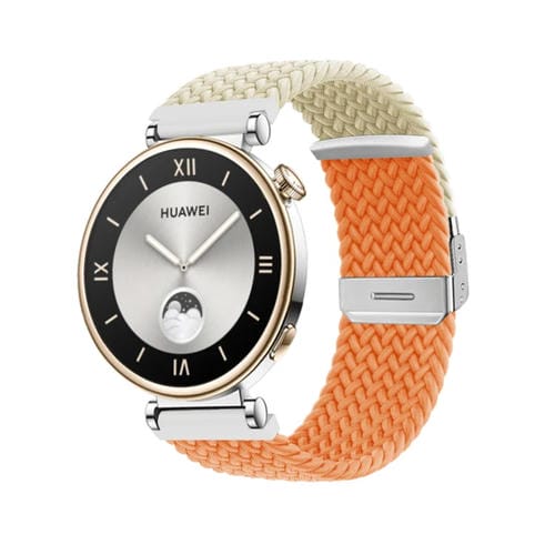 Correa de Reloj para Huawei Watch GT4 Nailon Trenzado Hebilla Integrada 41mm (Starlight + Naranja)