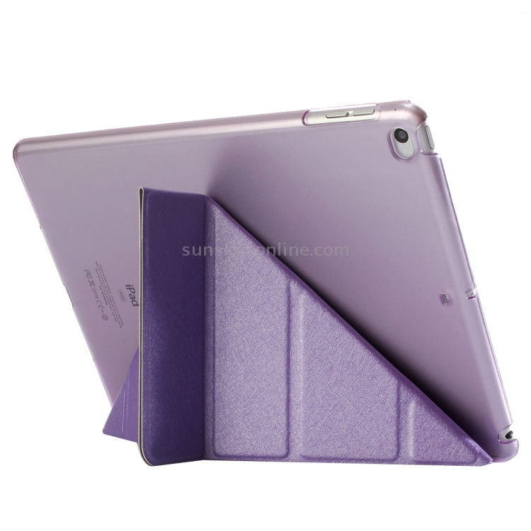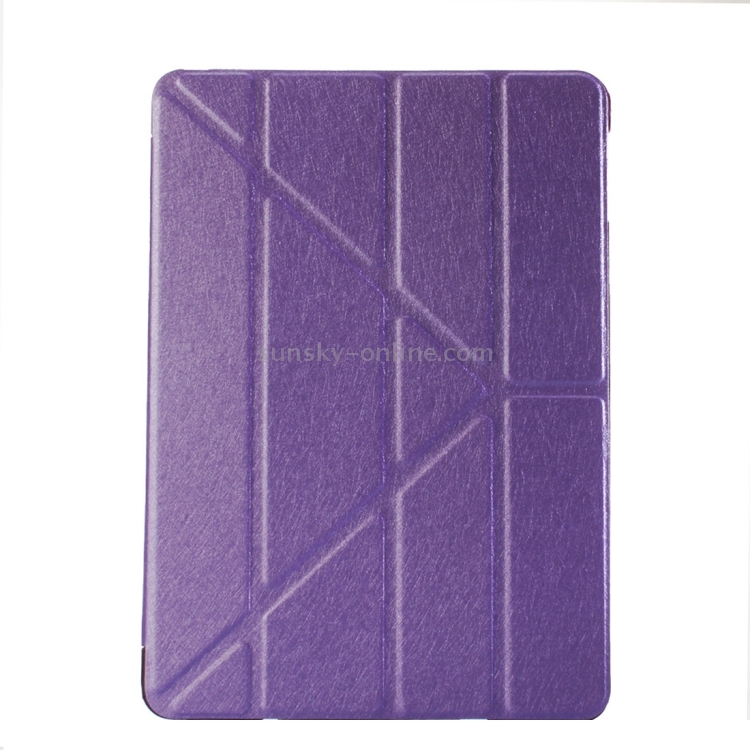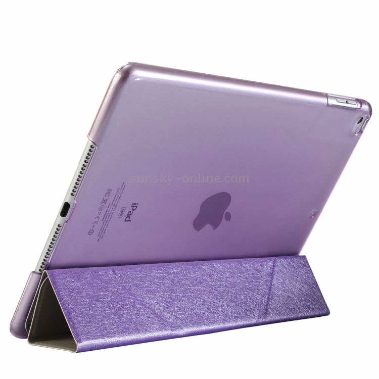 Funda de Cuero para iPad 9.7 (2018) y iPad 9.7 (2017) y iPad Air con Tapa de Deformación Horizontal y Textura de Seda (Púrpura)