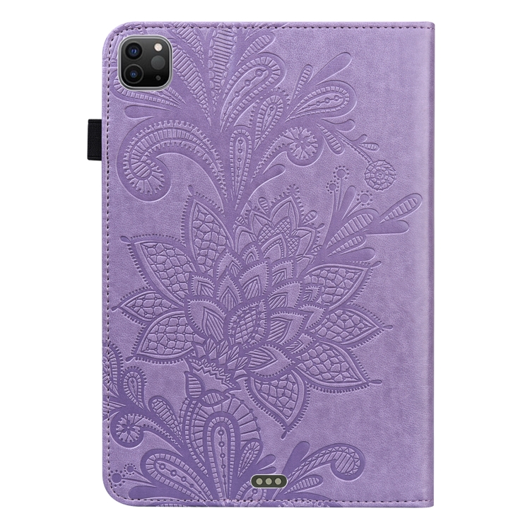 Estuche para Tableta iPad Pro 11 2022 / 2021 / Air 2020 10.9 Cuero Estampado Flores de Encaje (Púrpura)