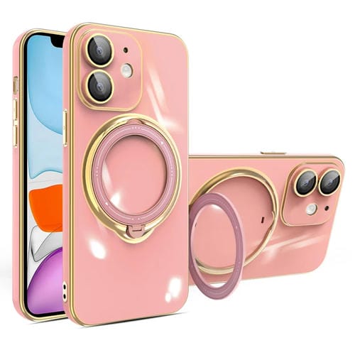 Funda para iPhone 11 Multifunción Galvanoplastia Magsafe Holder Phone Case (Rosa)
