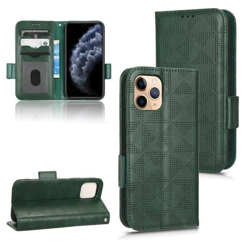 Funda para iPhone 11 Pro Max Symmetrical Triangle Leather Phone Case (Verde)