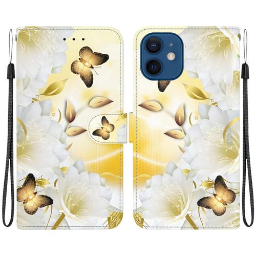 Funda para iPhone 12 Mini Cuero Dibujo Coloreado Textura Cristal (Epiphyllum Mariposa Dorada)