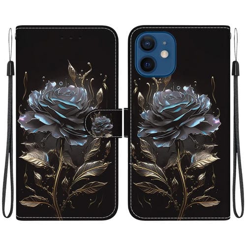 Funda para teléfono iPhone 12 Mini Cuero dibujo coloreado textura de cristal (Rosa Negra)