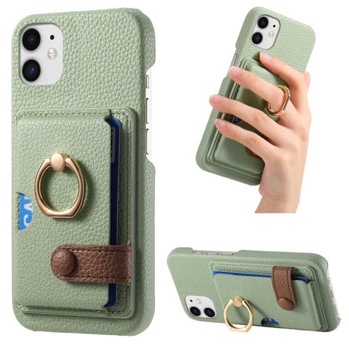 Funda para Teléfono iPhone 12 Mini Borde de Aceite Cuero Litchi Anillo Trasero Tarjeta (Verde Té)