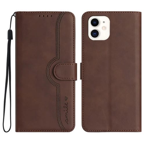 Funda para iPhone 12 Mini Skin Feel Leather con patrón de corazones (Marrón)