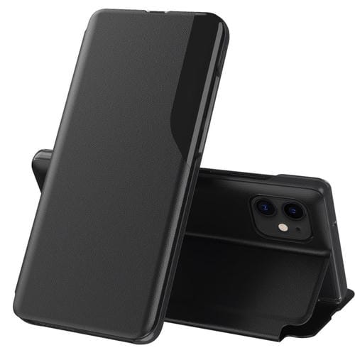 Funda de Cuero para iPhone 12 Mini con Pantalla Lateral, Tapa Horizontal Magnética, Soporte y Protección (Negro)