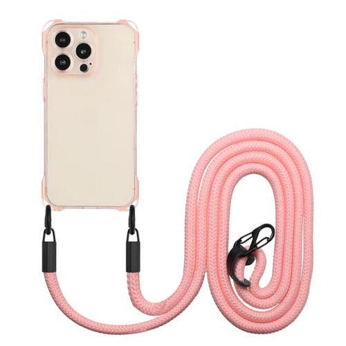 Funda para Teléfono TPU iPhone 12 Pro Max a Prueba de Golpes Cuatro Esquinas con Cordón (Rosa)
