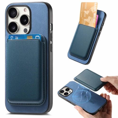Funda para teléfono iPhone 14 Pro Max Retro Magsafe Card Bag Pu con Contraportada (Azul)