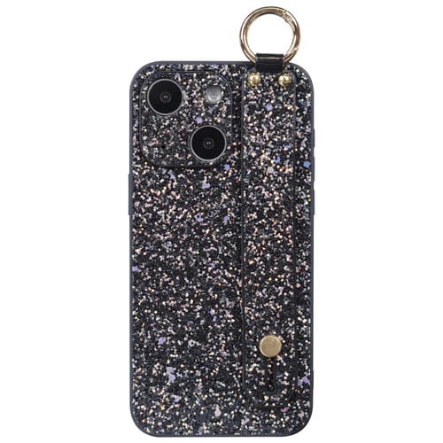 Estuche para Teléfono iPhone 15 Plus con Soporte para Pulsera Flash Diamond (Flash Black)