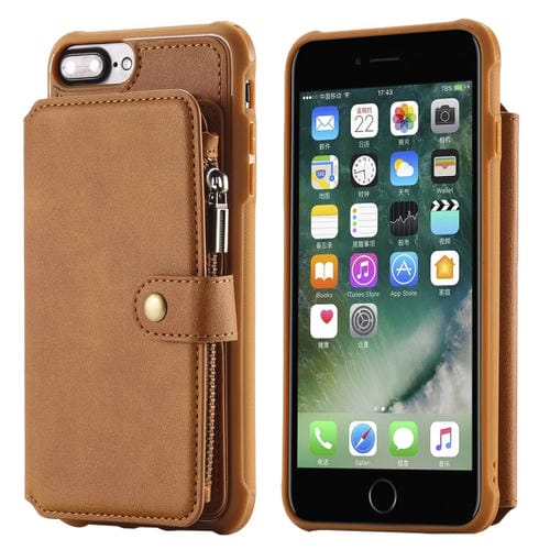 Estuche Protector para iPhone 7 Plus 8 Plus con Cremallera Ranuras Tarjetas Soporte Fotos Billetera (Marrón)