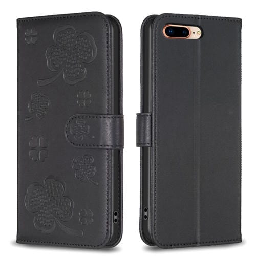 Funda para Teléfono iPhone 7 Plus/8 Plus Cuero con Relieve de Cuatro Hojas (Negro)