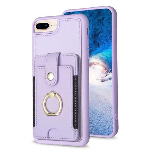 Funda para teléfono Bf27 para iPhone 8 Plus y 7 Plus con soporte para tarjeta y anillo de metal (Púrpura)