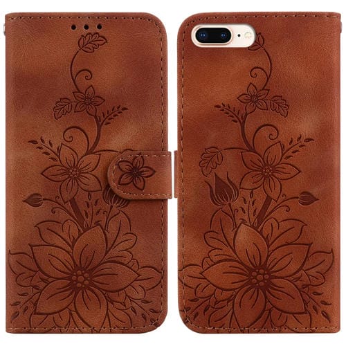 Funda para iPhone 8 Plus/7 Plus Cuero con Relieve Lily (Marrón)